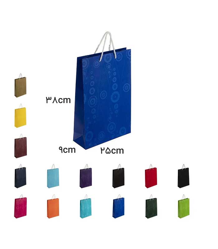 • ساک دستی آماده کاغذی عمودی (ایستاده) در ابعاد 25 در 38 و عطف 9 سانتی‌متر